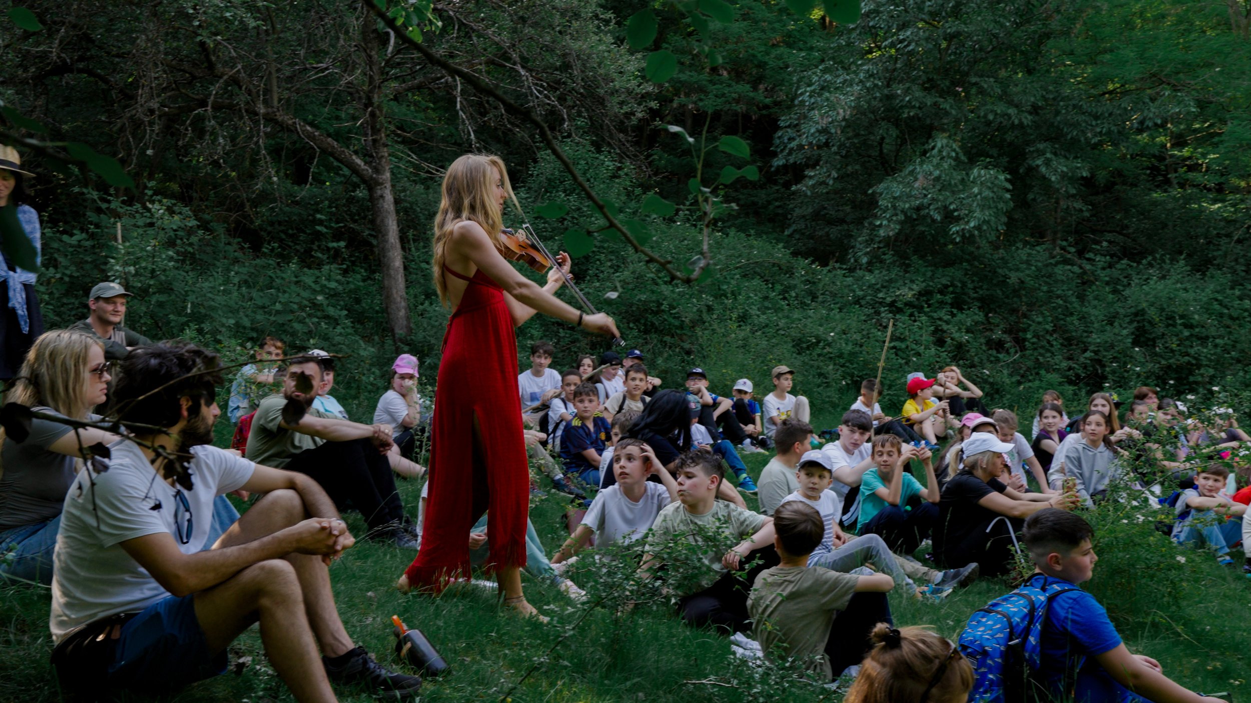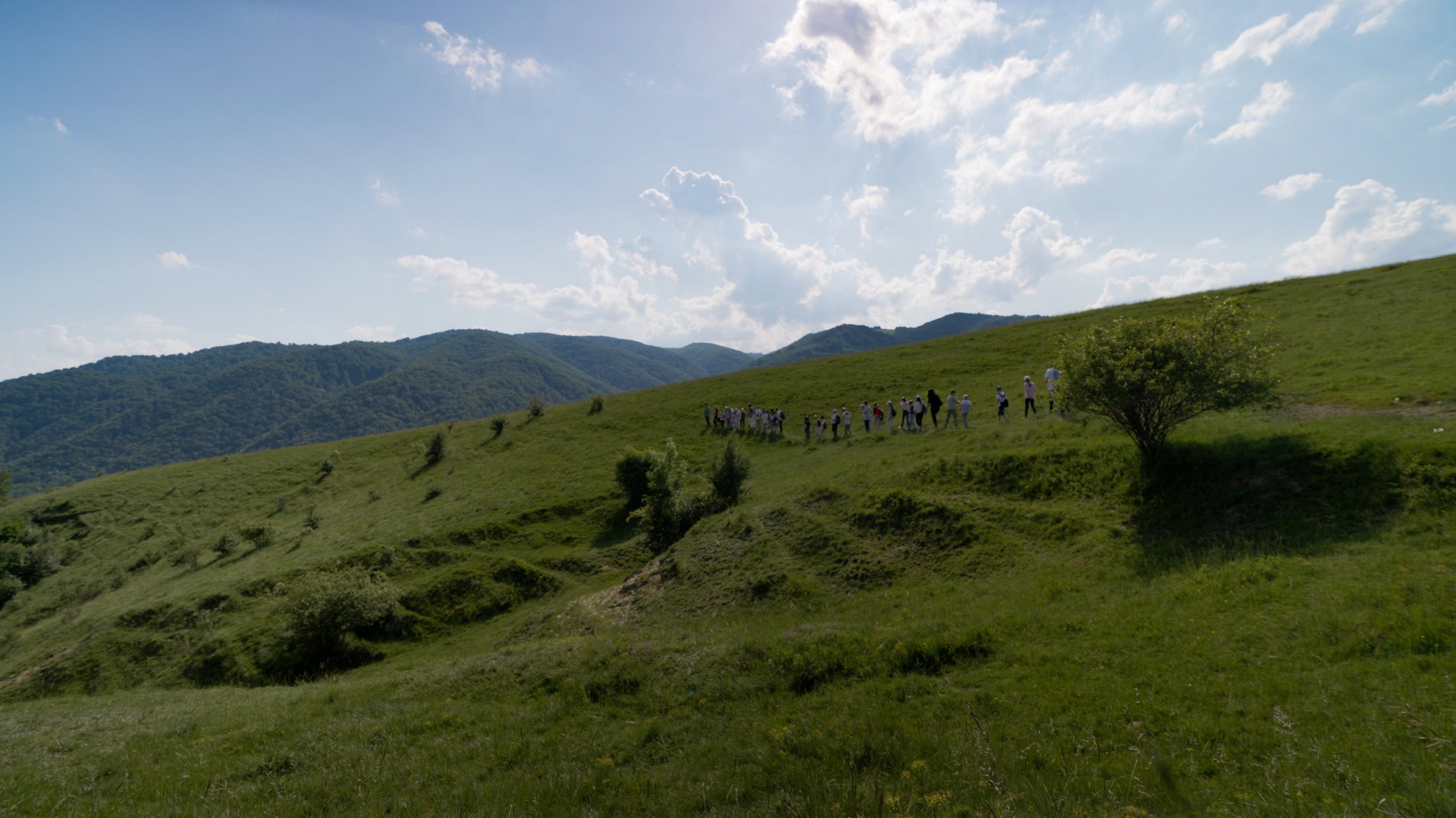 Children from Armeniș, previously trained in wildlife tracking, stepped into the role of guides, leading the group in silence through the landscape to a shared listening spot, where they tuned in to the surrounding soundscape and a surprise musical intervention, before returning quietly for reflection.